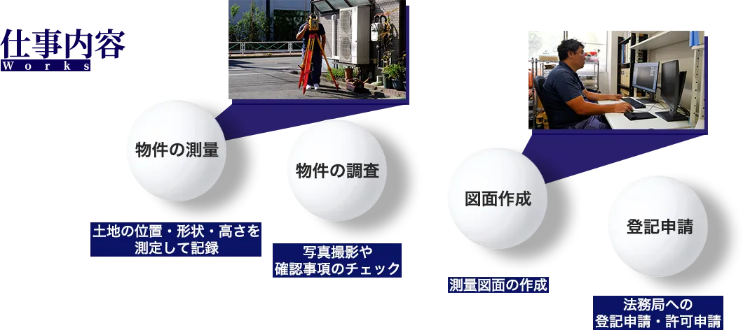 | 事業内容 | 測量設計 土地家屋調査士業 |